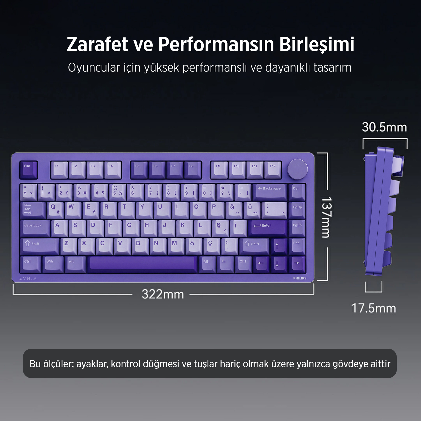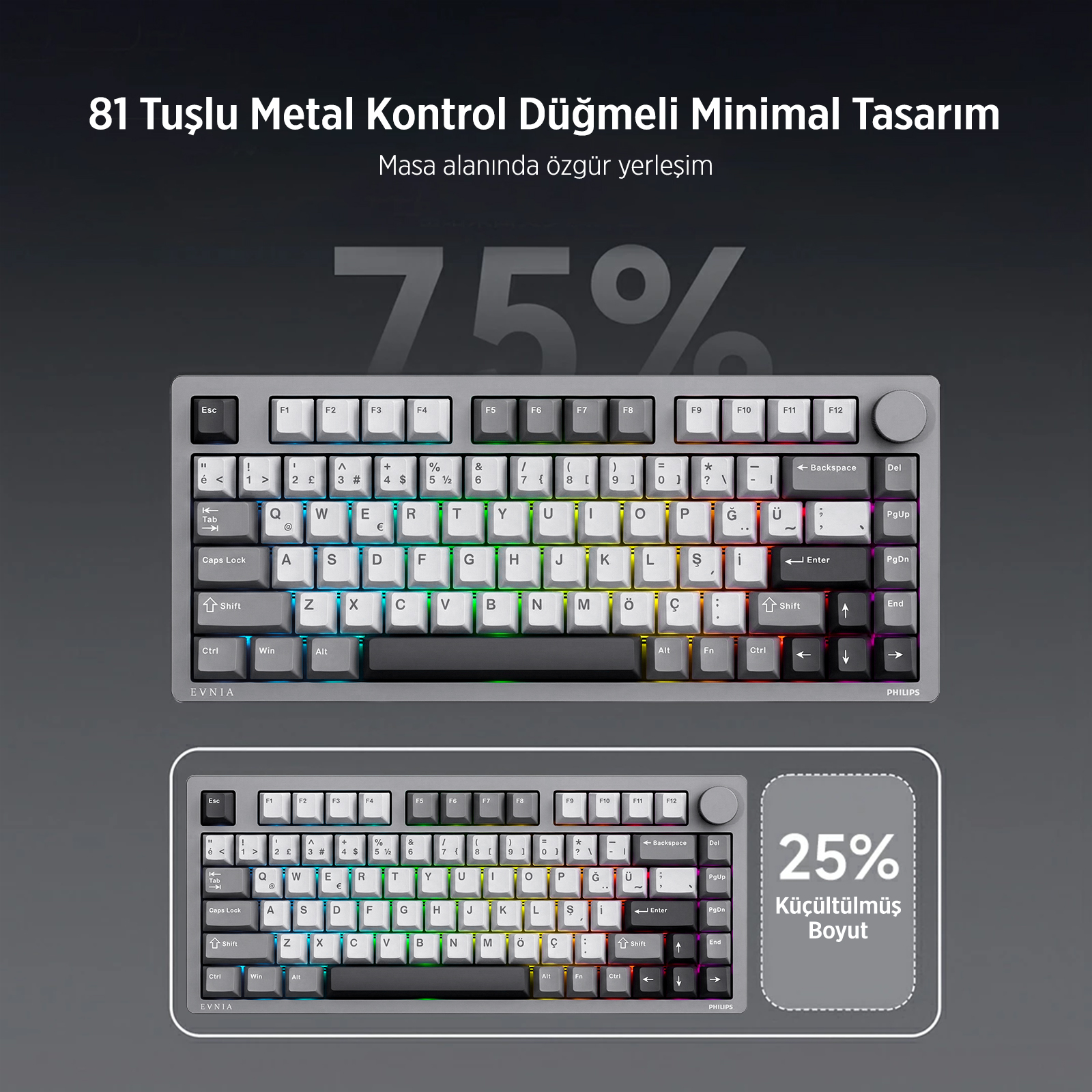 Philips EVNIA SPK8618 Mekanik RGB 81 Tuş USB/Bluetooth/2.4G Kablosuz Oyuncu Klavyesi Mor