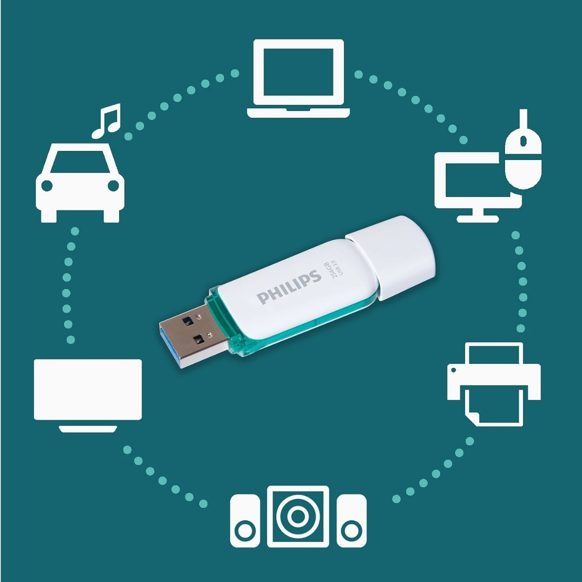 Philips Snow USB 3.0 bellek, 100 MB/s’ye kadar okuma hızıyla dosyalarınızı bilgisayarınıza çok daha hızlı aktarır. Fotoğraflar, müzikler ve belgeler gibi günlük dosya ihtiyaçlarınız için idealdir. USB 2.0’a göre çok daha kısa sürede veri aktarımı sağlar.