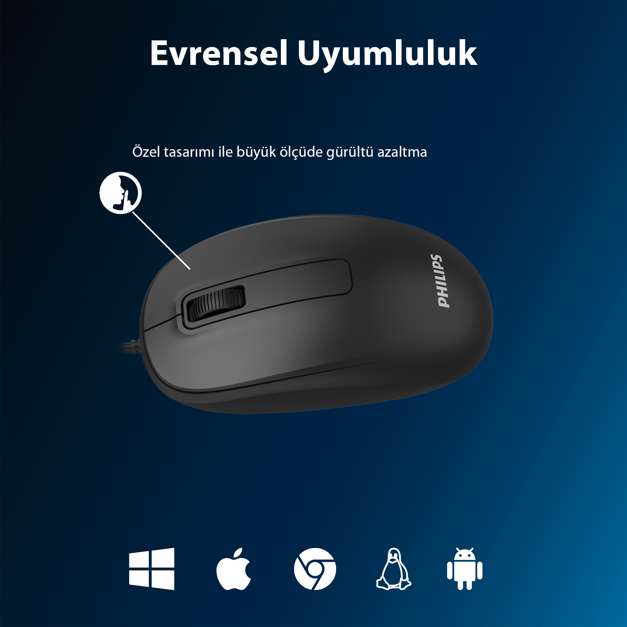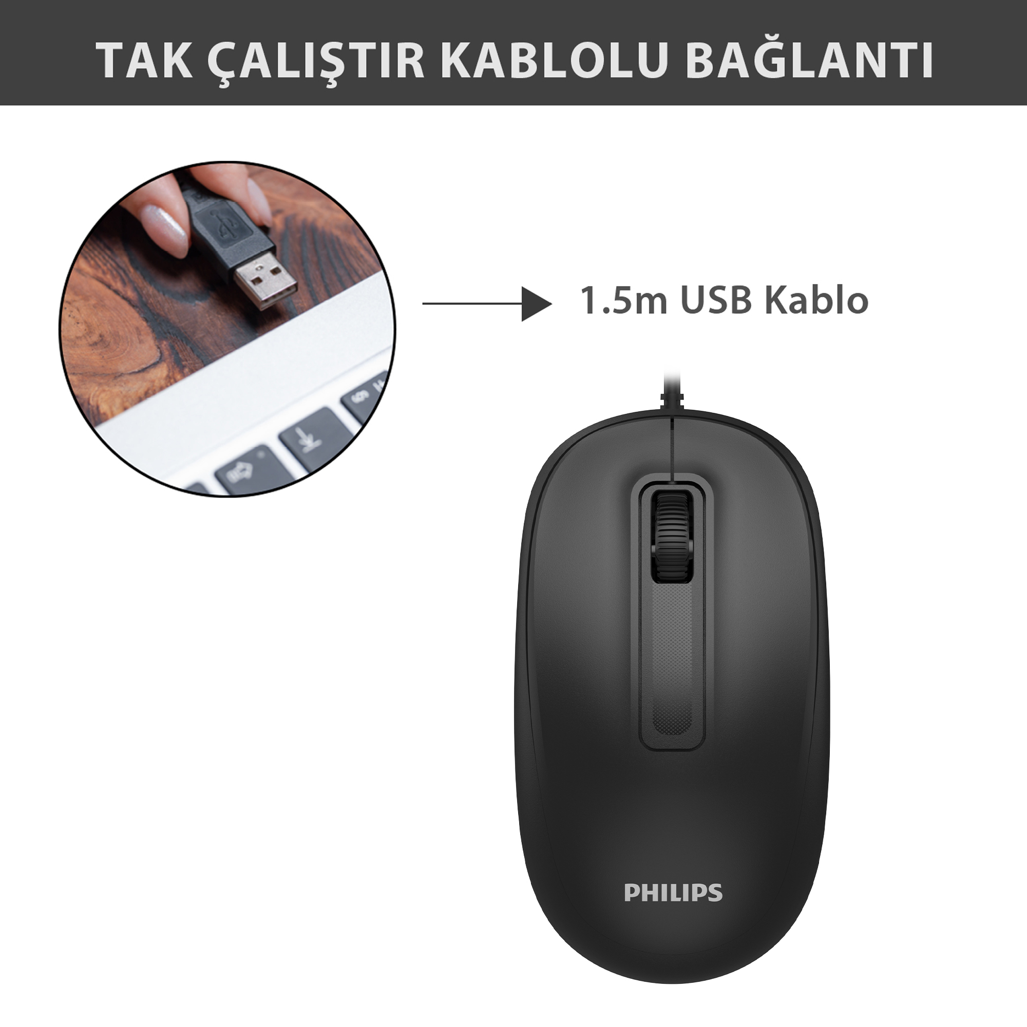 Philips SPK7238 USB Kablolu 1200DPI 3 Tuşlu Optik Mouse Siyah