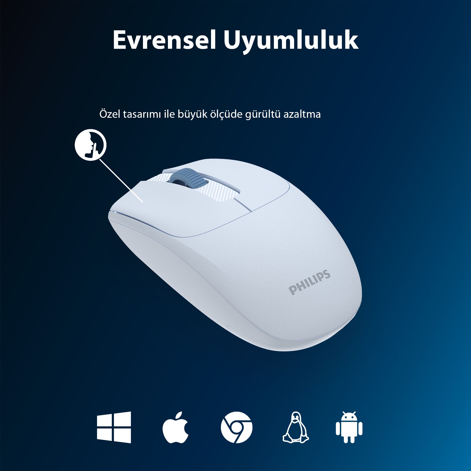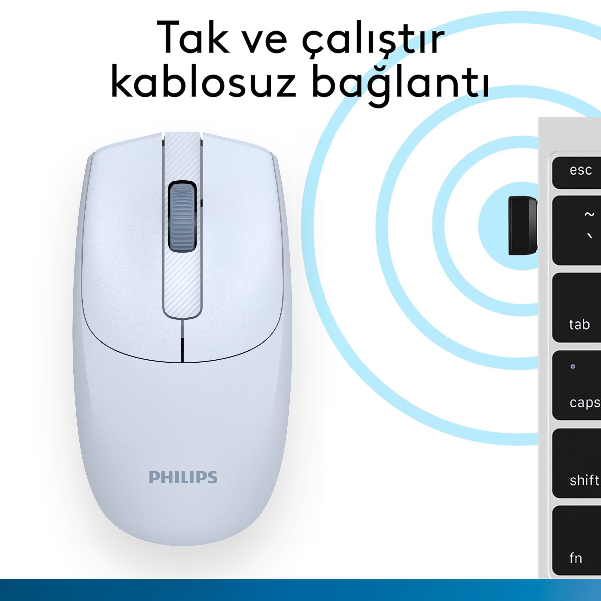 Philips SPK7398 Kablosuz 1600DPI 3 Tuşlu Optik Mouse Açık Mavi