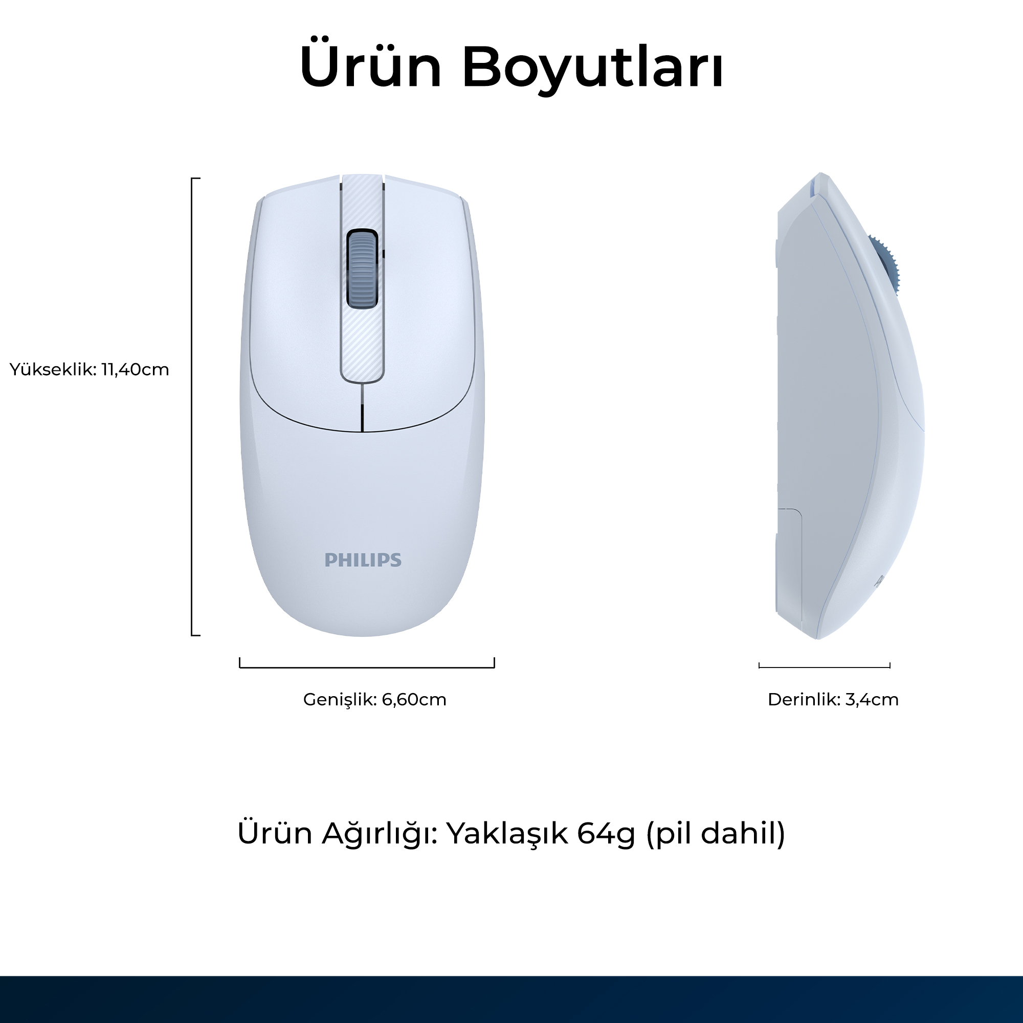 110.4 x 60.6 x 35.9 mm boyutları ve yalnızca 64 gram ağırlığı sayesinde ele rahat oturur ve taşınabilirliği kolaydır. Uzun süreli kullanımlarda elinizi yormaz, çantanızda kolayca taşıyabilirsiniz.