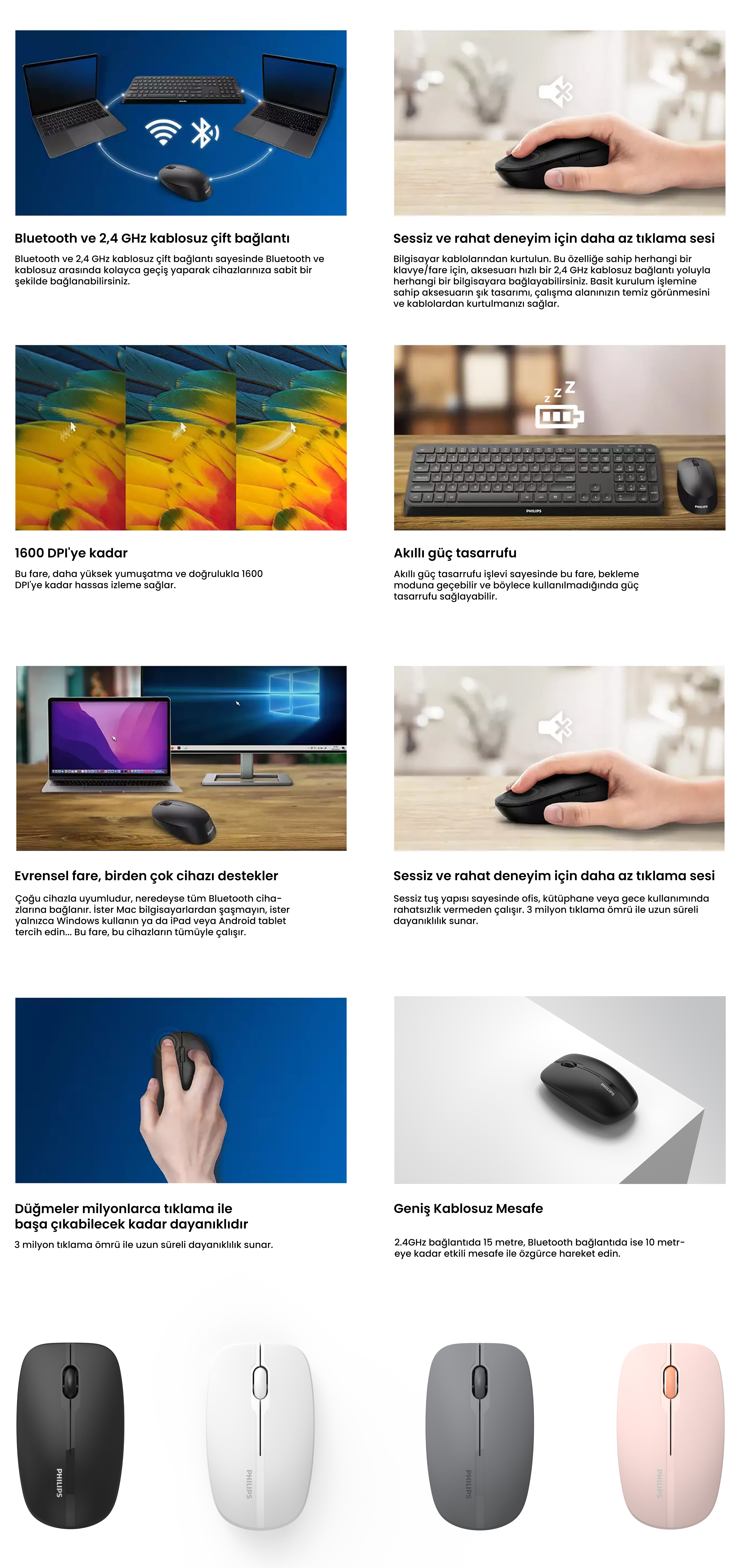 Philips SPK7418 Kablosuz Mouse – Sessiz, Hassas ve Çift Mod Bağlantı Özelliğiyle Her Zaman Yanınızda!