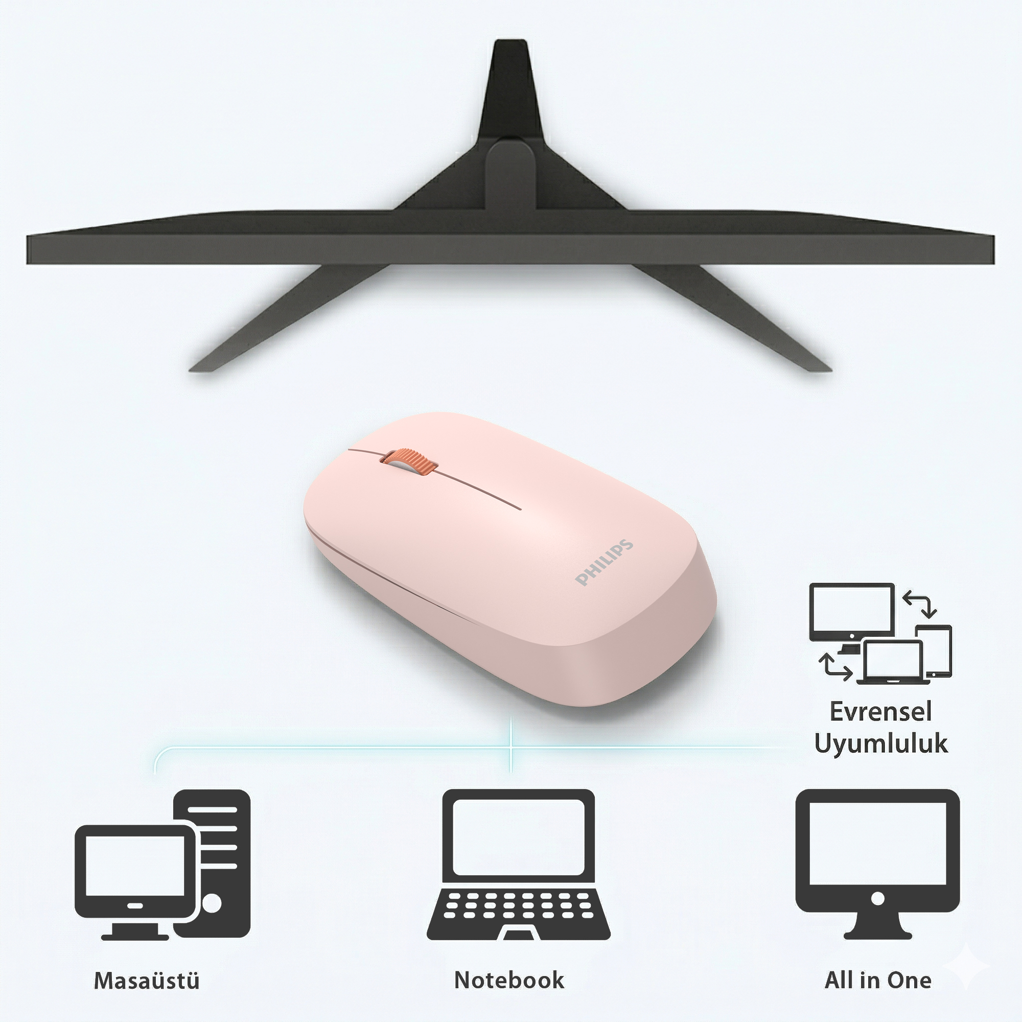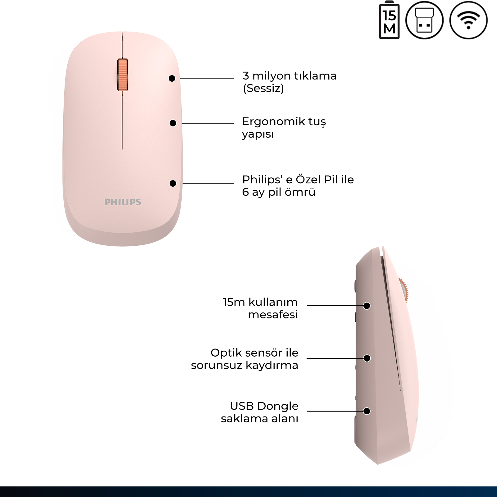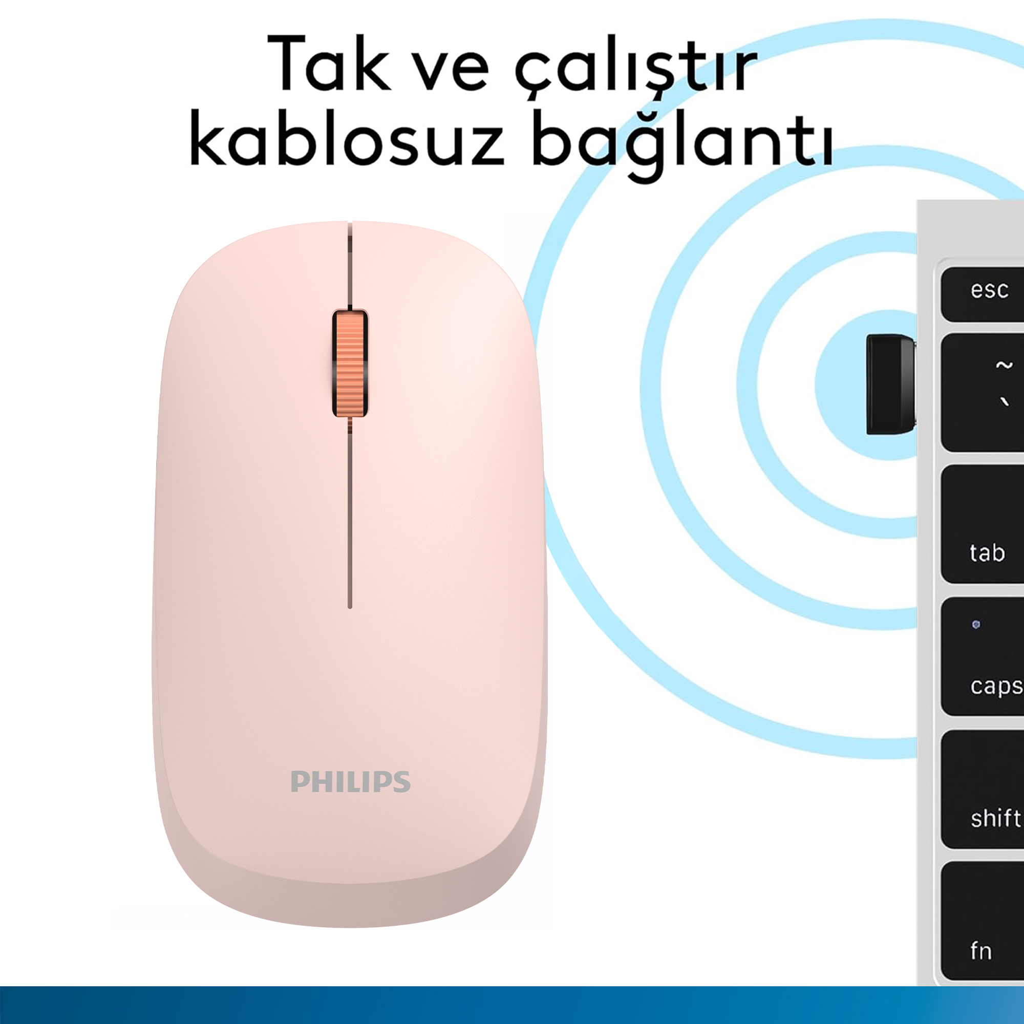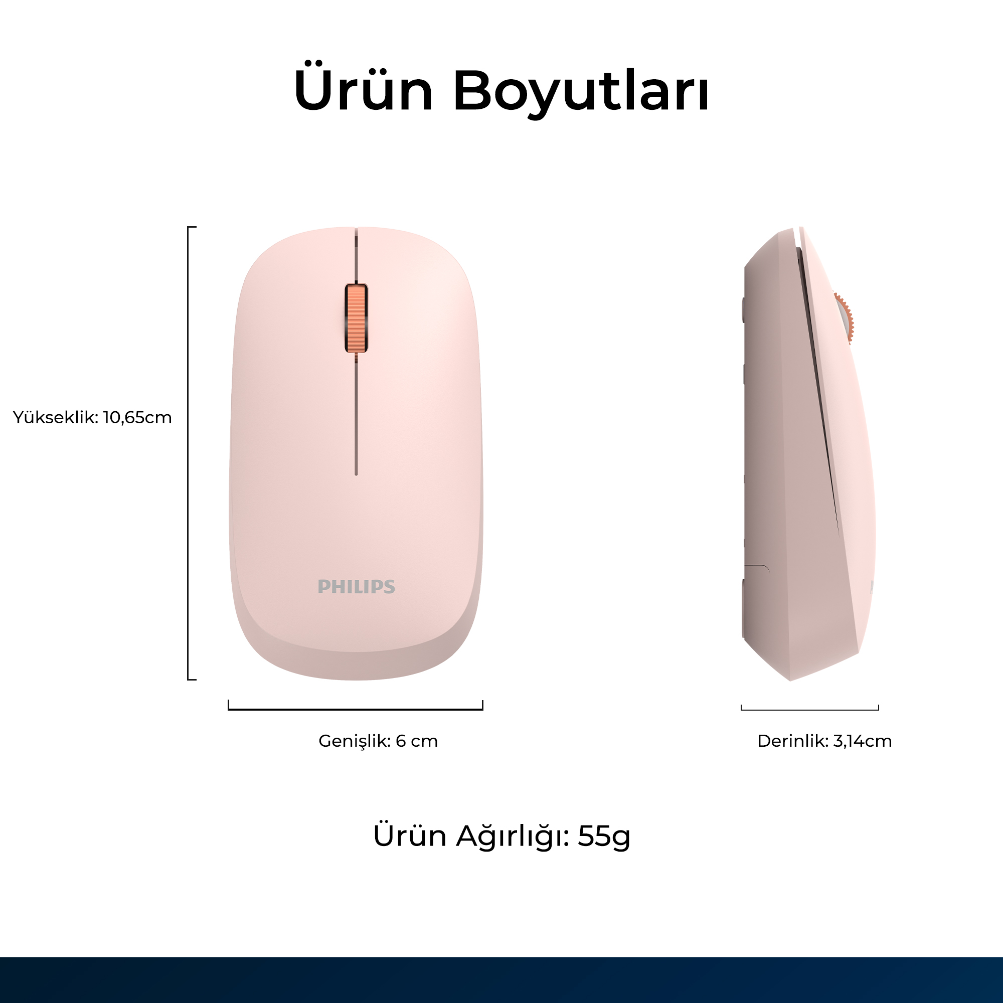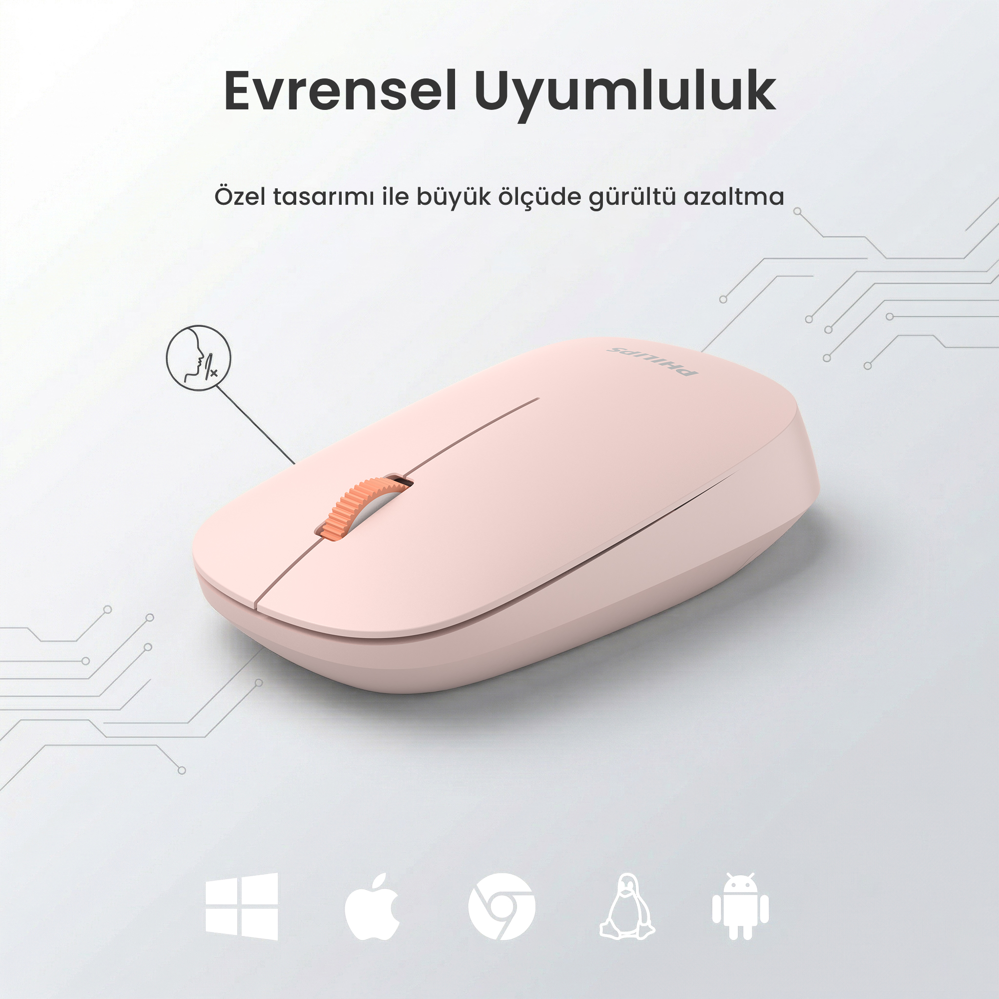 Philips SPK7438 Kablosuz Bluetooth 1600DPI 4 Tuşlu Optik Sessiz Mouse Pembe