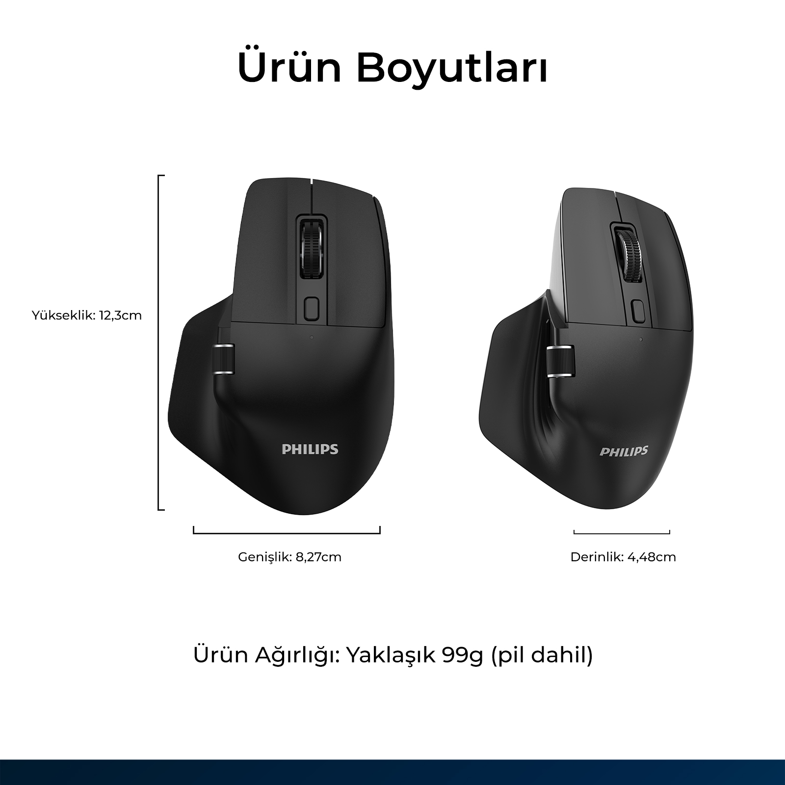 Philips SPK7858, çift kaydırma tekerleği sayesinde hem dikey hem yatay hareketlerde üstün kontrol sunar. Geniş tablolar, detaylı dokümanlar ve tasarım çalışmalarında ekran üzerinde daha hızlı ve pratik gezinme imkânı sağlar. Standart mouse’lardan farklı olarak iş akışınızı hızlandıran profesyonel bir kullanım deneyimi sunar.