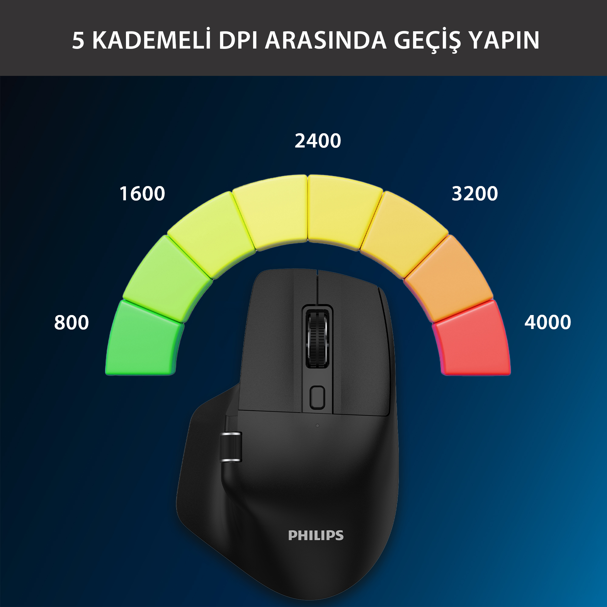 Philips SPK7858, 800’den 4000 DPI’ya kadar ayarlanabilir hassasiyet seçenekleri sunarak ihtiyacınıza göre maksimum kontrol sağlar. Düşük DPI’da stabil ve dengeli ofis kullanımı, yüksek DPI’da ise hızlı ve akıcı imleç hareketi elde edebilirsiniz. Tek tuşla hassasiyet seviyesini değiştirerek her senaryoda kusursuz ve profesyonel bir deneyim yaşayın.
