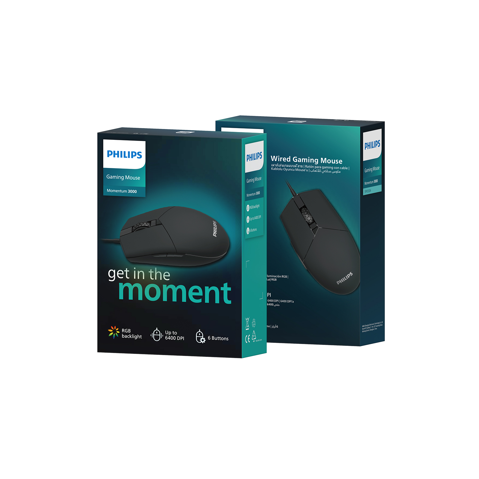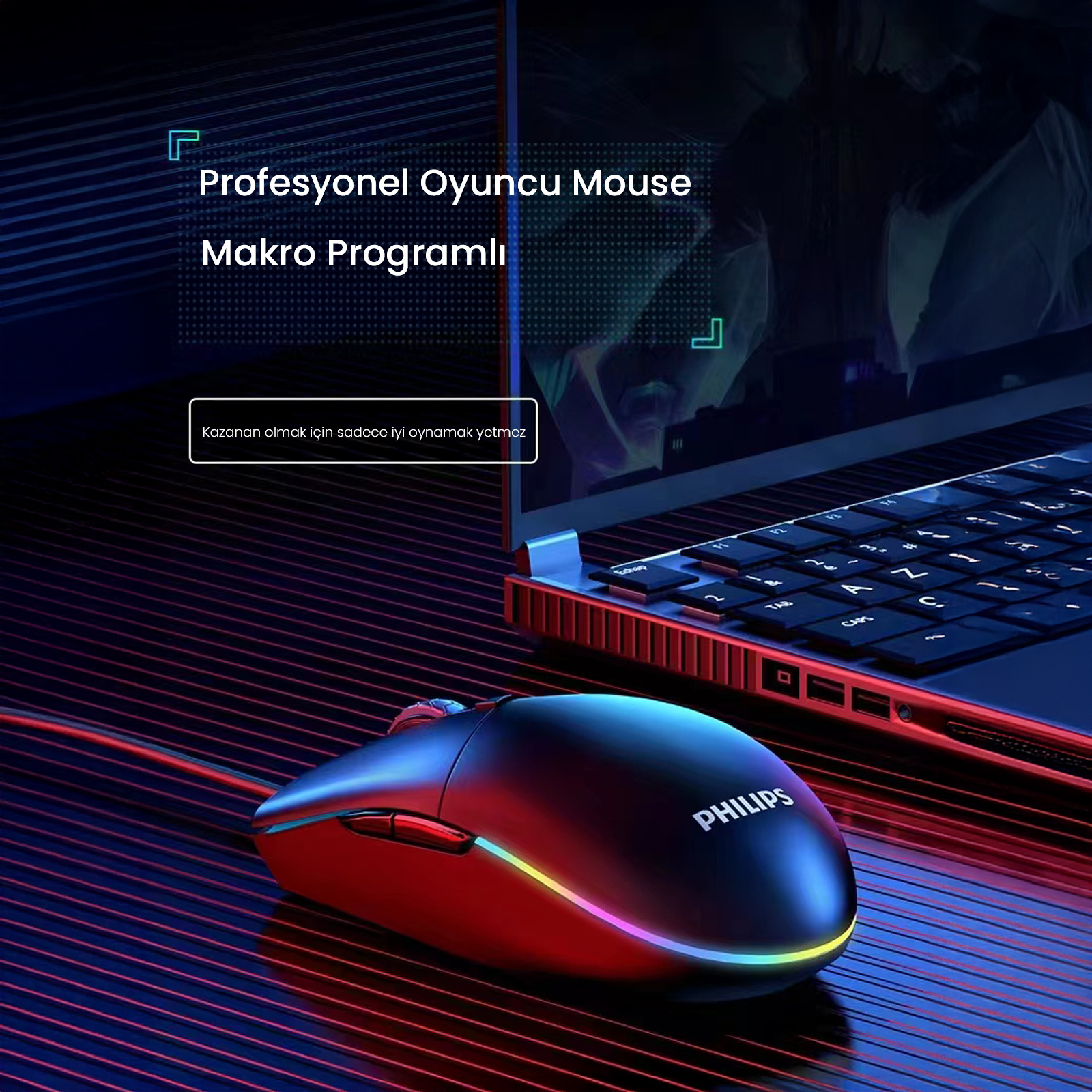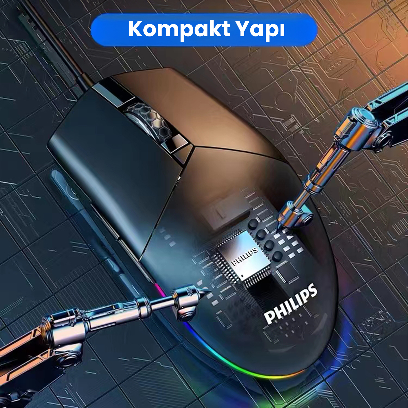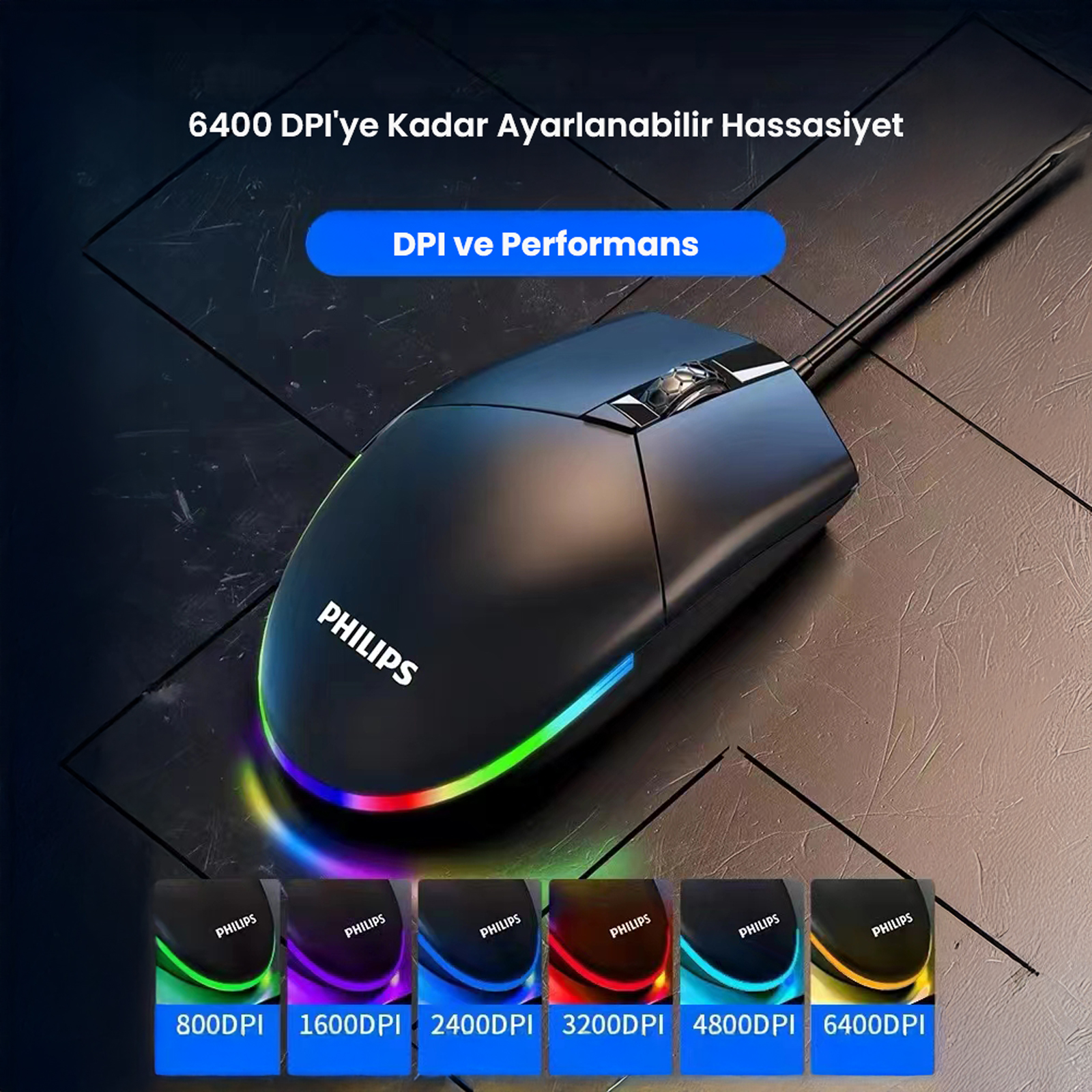 Philips SPK9304 USB Kablolu 6400DPI 6 Tuşlu RGB Aydınlatmalı Optik Mouse Siyah