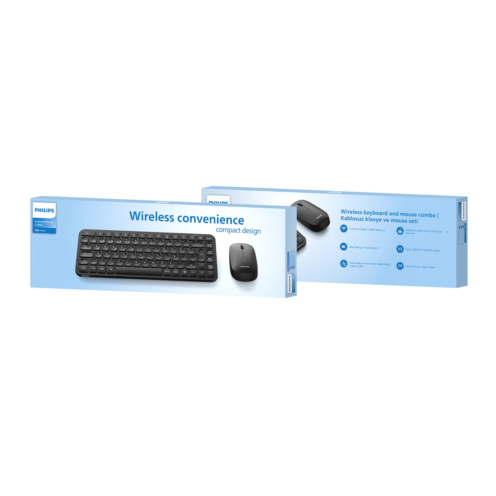 1x Philips SPT6338BS Kablosuz Türkçe Q Klavye ve Optik Mouse