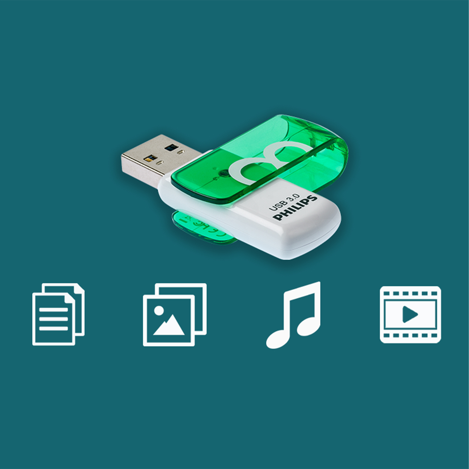 Philips Vivid USB 3.0 bellek, 100 MB/s’ye kadar okuma hızıyla dosyalarınızı bilgisayarınıza çok daha hızlı aktarır. Fotoğraflar, müzikler ve belgeler gibi günlük dosya ihtiyaçlarınız için idealdir. USB 2.0’a göre çok daha kısa sürede veri aktarımı sağlar.